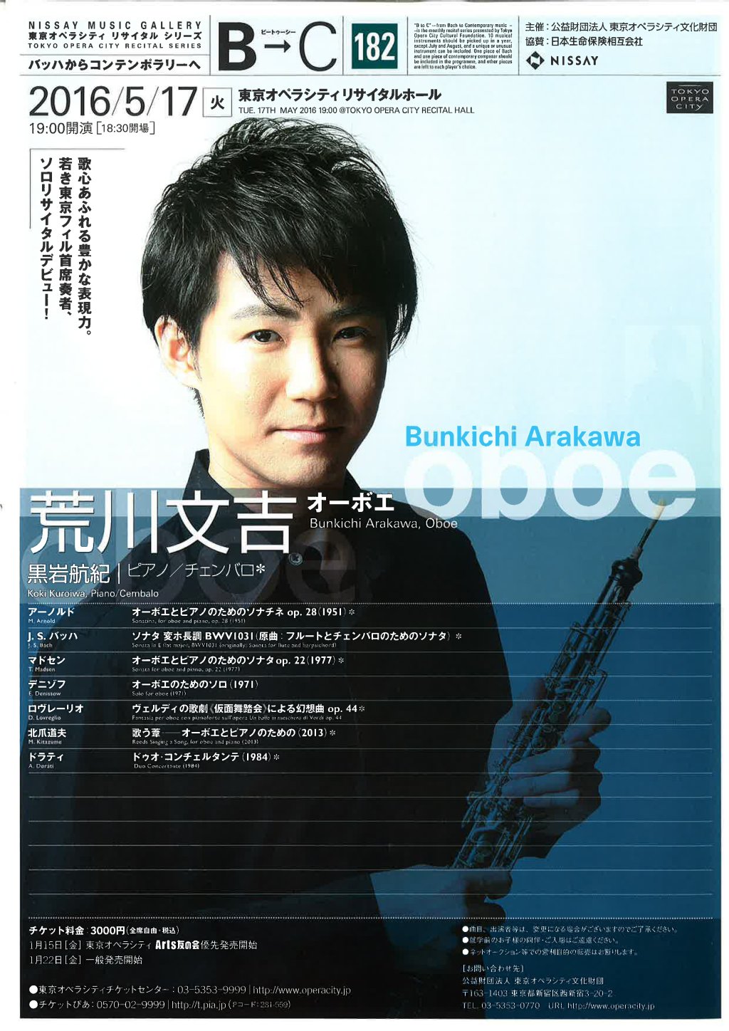 タカヒロワタナベ オーボエリサイタル 2016 Spring【後援】